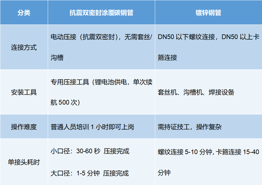 四、鍍鋅鋼管與涂覆鋼管連接工藝的對比
