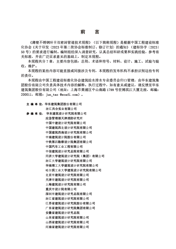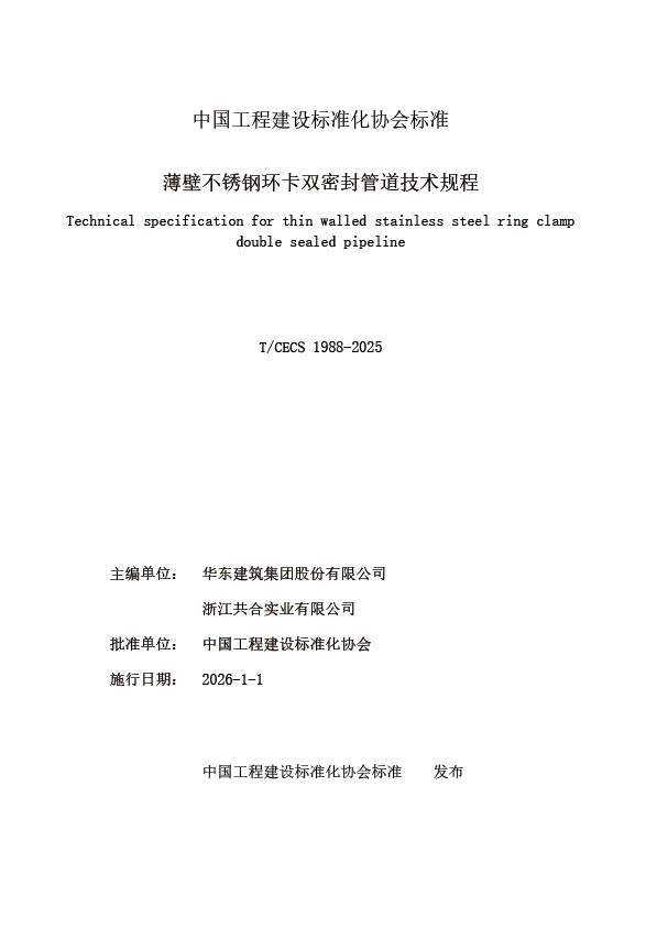《薄壁不銹鋼環(huán)卡雙密封管道技術(shù)規(guī)程》T CECS1988-2025